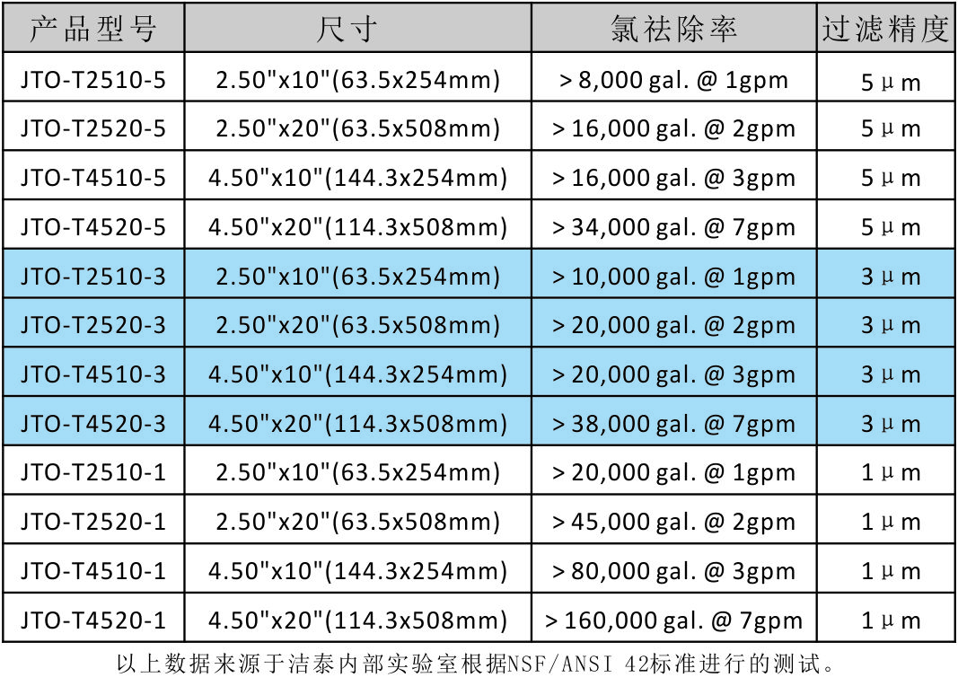 標準CTO炭棒濾芯使用食品級標準材料,